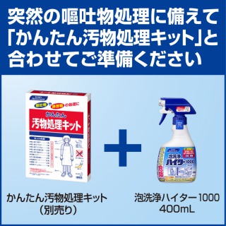 画像をクリックすると拡大表示します タイプ:泡スプレー , 内容量:400ml , その他仕様:●厨房・ホール用 , 成分:次亜塩素酸塩、水、その他成分 商品仕様詳細 花王 厨房用泡洗浄ハイター1000 400ml 1本 泡が素早く密着!次亜塩素酸ナトリウムが汚れに浸透してしっかり除菌します。 レビュー 0.0 (0件) レビューを書く お申込番号:563-4189 比較表に追加 気になる商品を選んで「比較表」にすることができます。チェックするとページ下部の「比較する商品一覧」に追加されます。商品を比較する 品番/型番:511478 メーカー名:花王 メーカー希望小売価格: オープン ※こちらの商品は、お届け地域によって分納・翌日以降のお届けとなる場合がございます。 ケアたのめーるケアたのめーる介護用品カテゴリーの商品です。 販売単位: 1本 提供価格649円(税込) 590円(税抜) 獲得予定ポイント 10pt 注文数 1 2 3 4 5 6 7 8 9 10+ カートに入れる お気に入りに追加 ご利用規約に基づき、返品を受け承る商品です。返品についてはリンク先より詳細をご確認ください。返品について この商品を見た人は、こんな商品も見ています この商品を買った人は、こんな商品も買っています 花王 厨房用泡洗浄ハイター1000 400ml 1本の商品詳細 概要 泡が素早く密着!次亜塩素酸ナトリウムが汚れに浸透してしっかり除菌します。 仕様 タイプ 泡スプレー 内容量 400ml その他仕様 ●厨房・ホール用 成分 次亜塩素酸塩、水、その他成分 JANコード 4901301511478 ①突然の嘔吐発生!適切な洗浄・除菌で2次汚染リスクを低減 嘔吐物には多くの汚染物質が含まれるため、2次汚染防止のためにも適切な処理が求められます。 汚物を取り除いたら、泡洗浄ハイター1000で洗浄・除菌しましょう。 ●除菌成分 次亜塩素酸塩配合 ●洗浄成分 界面活性剤配合 ※調理器具(まな板や湯飲みなど)や排水口の除菌・漂白・除臭には、キッチンハイターやキッチン泡ハイターをご使用ください。 ②液体除菌剤での嘔吐物処理の現状… ●適切な濃度調整の手間 ●希釈倍率のムラ、必要以上に高濃度な使用によるコスト増 ●緊急時の対応が遅れる ●次亜塩素酸塩の希釈液は濃度が徐々に低下しやすく、作り置きができない ③希釈不要の泡洗浄ハイター1000が解決します! ●濃度調整の手間がない ●誰が使っても一定の濃度で、必要以上に使いすぎることがない ●緊急時にもすばやく使える! ④汚染が気になるこんな場所に 汚れは、人の手がよく触れる場所など様々な場所を経由して広がります。 例えば… ●冷蔵庫の取手 ●ドアノブ ●厨房の作業台 ●トイレの便座 使い方は、対象物に直接スプレーするか、不織布などにスプレーして拭き取ります。 その後液が残らないようしっかり拭き取るか、流水で流します。 ⑤突然の嘔吐物処理に、かんたん汚物処理キットとの併用がおすすめ かんたん汚物処理キットとは、嘔吐物などをスピーディーに処理できるセットです。 ⑥こんなお客様におすすめ! ●飲食店 ●宿泊施設 ●カラオケ店 ●幼稚園・保育園 その他消毒・除菌剤のランキング その他消毒・除菌剤ランキング4位以下を見る 花王 クイックルJOAN スプレー 330円~(税込)/ 300円~(税抜) フマキラー アルコール除菌プレミアム ウイルシャット 250mL 1本 968円(税込)/ 880円(税抜) 花王 クイックルJoan 除菌シート つめかえ用 70枚 1パック 396円(税込)/ 360円(税抜) 消毒剤・除菌剤のランキング 消毒剤・除菌剤ランキング4位以下を見る 花王 ビオレu 手指の消毒液 つけかえ用 400ml 521円~(税込)/ 474円~(税抜) 花王 ハンドスキッシュEX 手指消毒剤 つめかえ用 4.5L 3,980円~(税込)/ 3,619円~(税抜) サラヤ ハンドラボ 消毒用ハンドアルコール 業務用 2.7L 1本 2,750円(税込)/ 2,500円(税抜) 【介護向け】在宅医療製品 衛生用品特集 介護施設・事業所のBCP対策向けおすすめ品 知っ得一覧 特集一覧 消毒剤・除菌剤のカテゴリー 手指用消毒剤 その他消毒・除菌剤 衛生用品のカテゴリー ディスポーザブル ハンドソープ ハンド用小物 消毒剤・除菌剤 衛生用品 ヘルスケア 救急用品 薬関連用品 その他衛生用品 オフィス用品 口腔ケア・食事 入浴・清拭用品 トイレ・排泄用品 衛生用品 理美容用品 衣類 就寝用品 歩行・移動補助 ユニフォーム 生活用品 介護用事務用品 レクリエーション 「たのめーる」は、「花王 厨房用泡洗浄ハイター1000 400ml 1本」をリーズナブルなお値段でお届けします! 花王 厨房用泡洗浄ハイター1000 400ml 1本 提供価格 649円(税込) 590円(税抜) 1 2 3 4 5 6 7 8 9 10+ カートに入れる お気に入り ご利用規約に基づき、返品を受け承る商品です。返品についてはリンク先より詳細をご確認ください。返品について