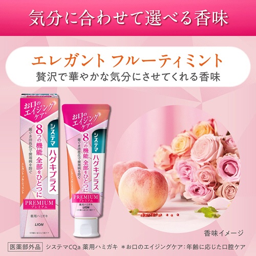 ライオン システマハグキプラスプレミアムハミガキ 95g 提供価格: 932 円~ 932 円 (税込)/ 848円~848円(税抜) バリエーションが 2 件あります 色、サイズ、入数など、1つの商品に複数のパターンがある商品をバリエーションといいます。表示する内容は、お好みで選択した条件で絞り込むこともできます。バリエーション一覧 バリエーションをすべて見る <パッケージ> 画像をクリックすると拡大表示します 内容量:95g , 香味:エレガントフルーティミント , 成分:[湿潤剤]ソルビット液、[清掃剤]無水ケイ酸A、[粘結剤]無水ケイ酸・CMC/Na、[薬用成分]硝酸カリウム・ポリリン酸Na・フッ化ナトリウム(フッ素として1450ppm)・酢酸トコフェロール(ビタミンE)・イソプロピルメチルフェノール(IPMP)・トラネキサム酸、[発泡剤]POE硬化ヒマシ油・ヤシ油脂肪酸アミドプロピルベタイン液・ラウロイルメチルタウリンNa、[香味剤]香料(エレガントフルーティミントタイプ)・サッカリンNa、[pH調整剤]クエン酸Na・クエン酸、[着色剤]雲母Ti・黄5、[粘度調整剤]キサンタンガム、[清涼剤]メントール、[保存剤]パラベン , 備考:※販売名:システマCQa※6才未満のお子様へのご使用はお控えください。 , シリーズ名:システマ 商品仕様詳細 「ケアたのめーる」カタログ vol.33 23ページ vol.34 23ページ 代表商品 ライオン システマ ハグキプラス プレミアムハミガキ エレガントフルーティミント 95g 1本 8つの機能全部をひとつに。歯ぐき活性化で歯周病を防ぐ。 レビュー 5.0 (1件) レビューを書く お申込番号:460-8635 比較表に追加 気になる商品を選んで「比較表」にすることができます。チェックするとページ下部の「比較する商品一覧」に追加されます。商品を比較する 品番/型番:シスHPプレミアムEFM メーカー名:ライオン カタログ掲載商品最新の介護用品カタログ「ケアたのめーる」に掲載されている商品です。 医薬部外品医薬部外品にあたる商品です。 この商品の詳細を見る 提供価格932円(税込) 848円(税抜) 獲得予定ポイント 16pt 注文数 1 2 3 4 5 6 7 8 9 10+ カートに入れる お気に入りに追加 お客様ご都合によるキャンセル・返品をお受けできない商品です。返品不可商品についてはリンク先より詳細をご確認ください。返品について ライオン システマハグキプラスプレミアムハミガキ 95gのバリエーション一覧 絞り込み 絞り込みを解除する 香味 エレガントフルーティミント フレッシュクリスタルミント 全2件(2商品) 1~2件を表示 並び替え 指定なし 価格の安い順 価格の高い順 評価が高い順 メーカー名順 商品名順 表示切替 10件 20件 50件 100件 比較表 気になる商品を選んで「比較表」にすることができます。チェックするとページ下部の「比較する商品一覧」に追加されます。商品を比較する 商品情報 香味 提供価格 ライオン システマ ハグキプラス プレミアムハミガキ エレガントフルーティミント 95g 1本 カタログ掲載商品最新の介護用品カタログ「ケアたのめーる」に掲載されている商品です。 医薬部外品医薬部外品にあたる商品です。 5.0 お申込番号 :460-8635 品番/型番:シスHPプレミアムEFM メーカー名:ライオン エレガントフルーティミント 提供価格 932円(税込) 848円(税抜) 1本あたり 932円(税込) 1 2 3 4 5 6 7 8 9 10+ カートに入れる お気に入りに追加 ライオン システマ ハグキプラス プレミアムハミガキ フレッシュクリスタルミント 95g 1本 カタログ掲載商品最新の介護用品カタログ「ケアたのめーる」に掲載されている商品です。 医薬部外品医薬部外品にあたる商品です。 0.0 お申込番号 :460-8642 品番/型番:シスHPプレミアムFCM メーカー名:ライオン フレッシュクリスタルミント 提供価格 932円(税込) 848円(税抜) 1本あたり 932円(税込) 1 2 3 4 5 6 7 8 9 10+ カートに入れる お気に入りに追加 ライオン システマ ハグキプラス プレミアムハミガキ エレガントフルーティミント 95g 1本のカスタマーレビュー 総合評価・・・ 5.0 (1件) 5点 1件 4点 0件 3点 0件 2点 0件 1点 0件 レビューを書く 歯磨きもエレガントに・・ちょっぴりピンクの歯磨き粉。 2024年6月28日 LOVE 5.0 CM見て気になってました!毎日ミントを使ってると飽きてくるのでたまに違う味やちょっぴり贅沢に・・・ずっと磨いていただくなるような歯磨き粉がいいなと。たまに歯というより、歯茎が気になる時にマッサージのようなブラッシング。ミントすぎない辛くない歯磨き粉はうれしいです。歯医者に行ったあとの状態をキープしていたいときにはプレミアムで! 0人中、0人の方が「このレビューが参考になった」と投票しています。 すべてのレビューを見る この商品を見た人は、こんな商品も見ています この商品を買った人は、こんな商品も買っています 歯磨き粉のカテゴリー 歯ブラシ 歯磨き粉 歯間ブラシ・デンタルフロス 口内洗浄剤 口内保湿ジェル/スプレー 舌クリーナー その他口腔ケア 戻る ホーム 衣料・生活用品 ヘルス&ビューティ 口腔ケア 歯磨き粉 ライオン システマハグキプラスプレミアムハミガキ 95g あなたが最近