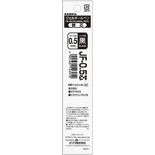 ゼブラ ジェルボールペン替芯 JF-0.5芯 パック品 P-RJF5 提供価格: 70 円~ 70 円 (税込)/ 64円~64円(税抜) バリエーションが 4 件あります 色、サイズ、入数など、1つの商品に複数のパターンがある商品をバリエーションといいます。表示する内容は、お好みで選択した条件で絞り込むこともできます。バリエーション一覧 バリエーションをすべて見る ※メーカー都合により、パッケージデザインが変更になる場合がございます。 画像をクリックすると拡大表示します インク種類:水性顔料 , インク色:黒 , ボール径:0.5mm , 全長:111.1mm , 直径:6.1mm , 対応ボールペン:サラサグランド、サラサクリップ0.5、サラサ0.5、エアーフィット、サラサスティック0.5(黒)、サラサSE0.5 商品仕様詳細 代表商品 ゼブラ ジェルボールペン替芯 JF-0.5芯 黒 パック品 P-RJF5-BK 1本 ZEBRAジェルボールペン用の替芯 レビュー 0.0 (0件) レビューを書く お申込番号:418-7112 比較表に追加 気になる商品を選んで「比較表」にすることができます。チェックするとページ下部の「比較する商品一覧」に追加されます。商品を比較する 品番/型番:P-RJF5-BK メーカー名:ゼブラ お取り寄せ商品ご注文いただいてから、メーカーまたは仕入先よりお取り寄せする商品です。 この商品の詳細を見る 提供価格70円(税込) 64円(税抜) 割引率 20% 獲得予定ポイント 0pt 注文数 1 2 3 4 5 6 7 8 9 10+ カートに入れる お気に入りに追加 お客様ご都合によるキャンセル・返品をお受けできない商品です。返品不可商品についてはリンク先より詳細をご確認ください。返品について ゼブラ ジェルボールペン替芯 JF-0.5芯 パック品 P-RJF5のバリエーション一覧 絞り込み 絞り込みを解除する インク色 ブルーブラック 赤 青 黒 全4件(4商品) 1~4件を表示 並び替え 指定なし 価格の安い順 価格の高い順 評価が高い順 メーカー名順 商品名順 表示切替 10件 20件 50件 100件 比較表 気になる商品を選んで「比較表」にすることができます。チェックするとページ下部の「比較する商品一覧」に追加されます。商品を比較する 商品情報 インク色 提供価格 ゼブラ ジェルボールペン替芯 JF-0.5芯 黒 パック品 P-RJF5-BK 1本 お取り寄せ商品ご注文いただいてから、メーカーまたは仕入先よりお取り寄せする商品です。 0.0 お申込番号 :418-7112 品番/型番:P-RJF5-BK メーカー名:ゼブラ 黒 提供価格 70円(税込) 64円(税抜) 1本あたり 70円(税込) 1 2 3 4 5 6 7 8 9 10+ カートに入れる お気に入りに追加 ゼブラ ジェルボールペン替芯 JF-0.5芯 青 パック品 P-RJF5-BL 1本 お取り寄せ商品ご注文いただいてから、メーカーまたは仕入先よりお取り寄せする商品です。 0.0 お申込番号 :418-7129 品番/型番:P-RJF5-BL メーカー名:ゼブラ 青 提供価格 70円(税込) 64円(税抜) 1本あたり 70円(税込) 1 2 3 4 5 6 7 8 9 10+ カートに入れる お気に入りに追加 ゼブラ ジェルボールペン替芯 JF-0.5芯 赤 パック品 P-RJF5-R 1本 お取り寄せ商品ご注文いただいてから、メーカーまたは仕入先よりお取り寄せする商品です。 0.0 お申込番号 :418-7136 品番/型番:P-RJF5-R メーカー名:ゼブラ 赤 提供価格 70円(税込) 64円(税抜) 1本あたり 70円(税込) 1 2 3 4 5 6 7 8 9 10+ カートに入れる お気に入りに追加 ゼブラ ジェルボールペン替芯 JF-0.5芯 ブルーブラック パック品 P-RJF5-FB 1本 お取り寄せ商品ご注文いただいてから、メーカーまたは仕入先よりお取り寄せする商品です。 0.0 お申込番号 :418-7143 品番/型番:P-RJF5-FB メーカー名:ゼブラ ブルーブラック 提供価格 70円(税込) 64円(税抜) 1本あたり 70円(税込) 1 2 3 4 5 6 7 8 9 10+ カートに入れる お気に入りに追加 この商品を見た人は、こんな商品も見ています この商品を買った人は、こんな商品も買っています 替芯のカテゴリー キャップ式ゲルインクボールペン ノック式ゲルインクボールペン 多色・多機能ゲルインクボールペン 替芯 戻る ホーム 文具・事務用品 筆記具 ゲルインクボールペン 替芯 ゼブラ ジェルボールペン替芯 JF-0.5芯 パック品 P-RJF5 あなたが最近チェックした商品 もっと見る 話題のキーワード マスク コーヒー 2026年版カレンダー マスク ファイル 封筒 お菓子 ポリ袋 クリアファイル コーヒー マウス 商品名商品名商品名商品名商品名商品名商品名商品名商品名 上記の商品を●点カートに投入しました! 上記の商品を●点カートに投入しました! ●点を超える場合は、ご注文いただけません。 ##価格ご相談商品です。お問い合わせフォームまたはお電話にてお問い合わせください。 ## ## ## #if($userLoginDto.isLogin() && $userLoginDto.propertyEquals("hojinKojinKbn", "1")) ## お問い合わせフォーム ## ## #else ## お問い合わせフォーム ## ## #end ## ## ## ## たのめーるインフォメーション ## ## ## ## #if($userLoginDto.isLogin() && $userLoginDto.propertyEquals("hojinKojinKbn", "1")) ## 個人様向けお問い合わせ窓口 ## #else ## 法人様向けお問い合わせ窓口 ## #end ## ## ##【SI-803】 Start インフォメーションの電話番号統一化 ## $!esc.html($!userLoginDto.getProperty("kousiteQTelno")) ##【SI-803】 End インフォメーションの電話番号統一化 ## ## ## 受付時間