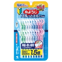奥歯にも使いやすいL字カーブ型のゴム歯間ブラシで、食べカス・歯垢を除去。