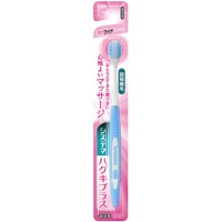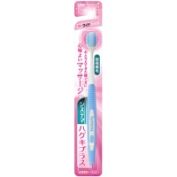 幅広ヘッドで、歯を磨くと同時に歯ぐきをマッサージできる歯槽膿漏対策歯ブラシです。