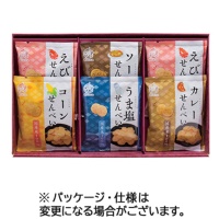 ●アソート内容/えびせんべい15g×2、コーンせんべい・うま塩せんべい・ソースせんべい・カレーせんべい各15g×1