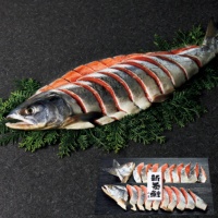 良質な秋鮭が獲れる海域で水揚げされた銀毛のオスの秋鮭にまんべんなく塩を振り漬込み、寒風干しの工程で味を熟成させ、鮭本来の旨みを引き出した「秋鮭切身」に、歯ごたえのあるカナダ産の数の子を、醤油ベースの調味液で鰹節風味に仕上げた「味付数の子」の詰合せです。