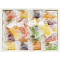 多彩な果実の風味をギュッと詰めた一口サイズのゼリー。一粒一粒がフルーツをかたどった愛らしいカタチは贈られた方の笑顔を誘います。
