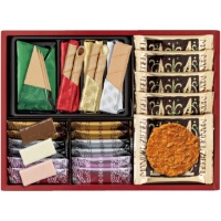 〈赤坂柿山〉の看板商品、薄焼きおかきの「慶長」、アーモンド一粒を丸ごと丁寧に包んだ「慶凰」など、人気の味を詰め合わせたバラエティー豊かな贈り物です。