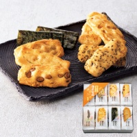 スモークチーズやスイートバジル、バージンオリーブオイルなど、洋風の素材を使用して、ソフトな口当たりに焼きあげました。6種の味が楽しめる米菓詰め合わせです。